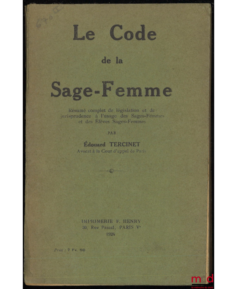 LE CODE DE LA SAGE-FEMME. Résumé complet de législation et de jurisprudence à l’usage des Sages-femmes et des Élèves Sages-Femmes