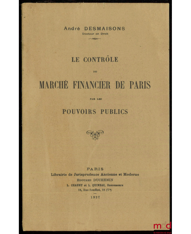 Aperçu Ajouter au panier Ajouter à vos souhaits Comparer Droit moderne (XX-XXIe siècles) DESMAISONS (André) LE CONTRÔLE DU MARCHÉ FINANCIER DE PARIS PAR LES POUVOIRS PUBLICS Prix LE CONTRÔLE DU MARCHÉ FINANCIER DE PARIS PAR LES POUVOIRS PUBLICS