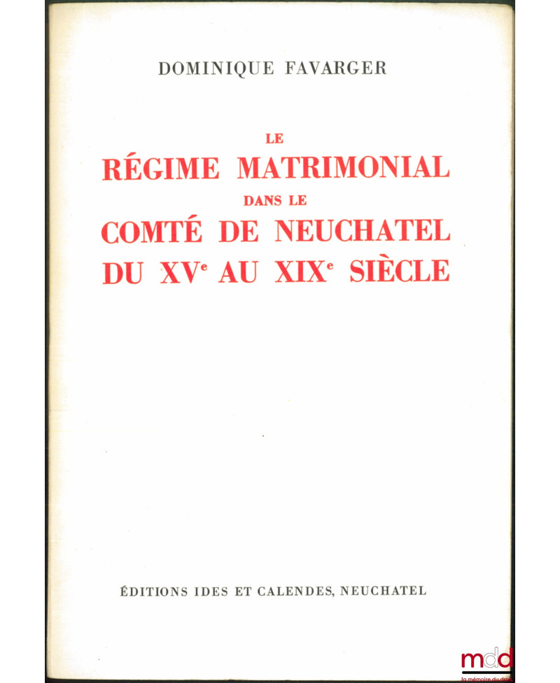 LE RÉGIME MATRIMONIAL DANS LE COMTÉ DE NEUCHÂTEL DU XVe AU XIXe SIÈCLE, Universitas Neocomensis Helvetiorum