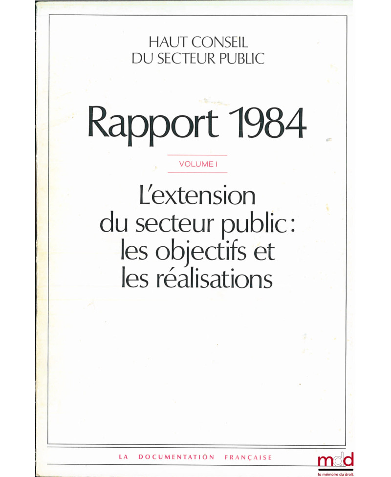 I : L’EXTENSION DU SECTEUR PUBLIC, LES OBJECTIFS ET LES RÉALISATIONS ; II : LA GESTION DU SECTEUR PUBLIC : LE SUIVI DES ACTIVITÉS, RAPPORT 1984