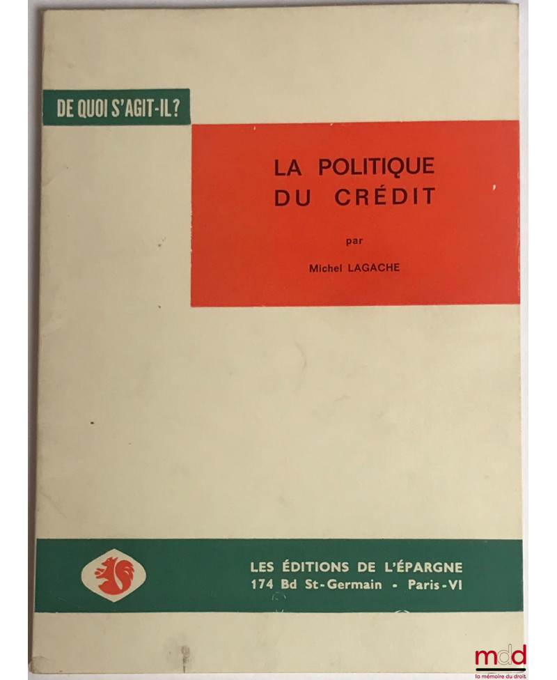 Aperçu Ajouter au panier Ajouter à vos souhaits Comparer Droit moderne (XX-XXIe siècles) LAGACHE (Michel) LA POLITIQUE DU CRÉDIT, coll. De quoi s’agit-il Prix LA POLITIQUE DU CRÉDIT, coll. De quoi s’agit-il