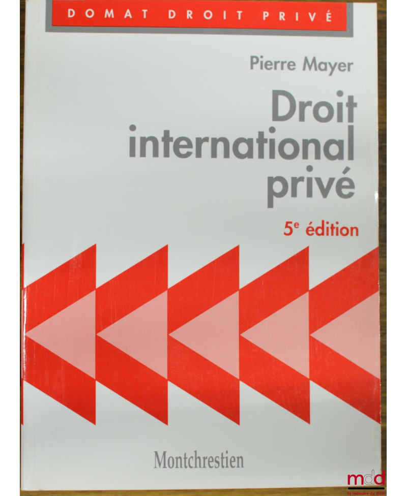 Aperçu Ajouter au panier Ajouter à vos souhaits Comparer Droit moderne (XX-XXIe siècles) MAYER (Pierre) DROIT INTERNATIONAL PRIVÉ, 2ème éd., coll. Université nouvelle, Précis Domat Prix DROIT INTERNATIONAL PRIVÉ, 2ème éd., coll. Université nouvelle, Précis Domat
