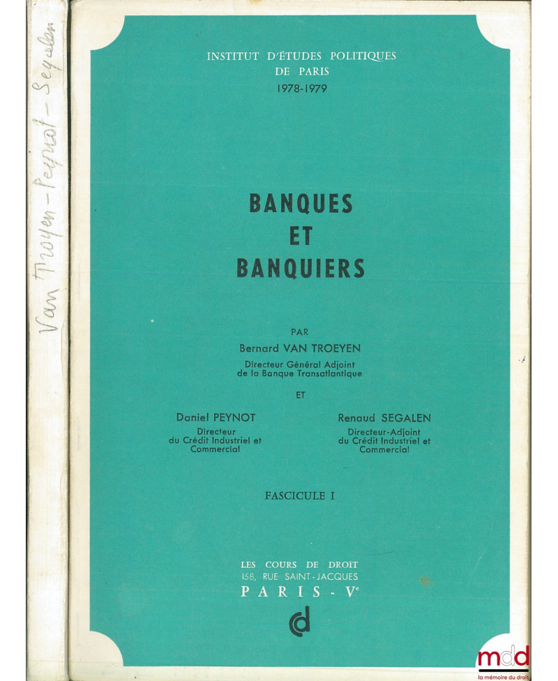 BANQUES ET BANQUIERS, Cours à l’Institut d’études politiques de Paris 1978-1979, fasc. I et II