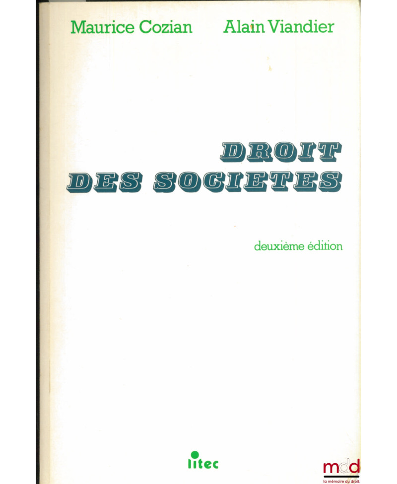 Aperçu Ajouter au panier Ajouter à vos souhaits Comparer Droit moderne (XX-XXIe siècles) COZIAN (Maurice) et VIANDIER (Alain) DROIT DES SOCIÉTÉS, 3ème éd. Prix DROIT DES SOCIÉTÉS, 3ème éd.