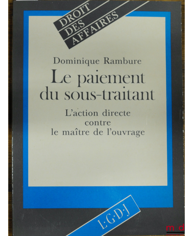 LE PAIEMENT DU SOUS-TRAITANT - L’ACTION DIRECTE CONTRE LE MAÎTRE DE L’OUVRAGE, coll. Droit des affaires