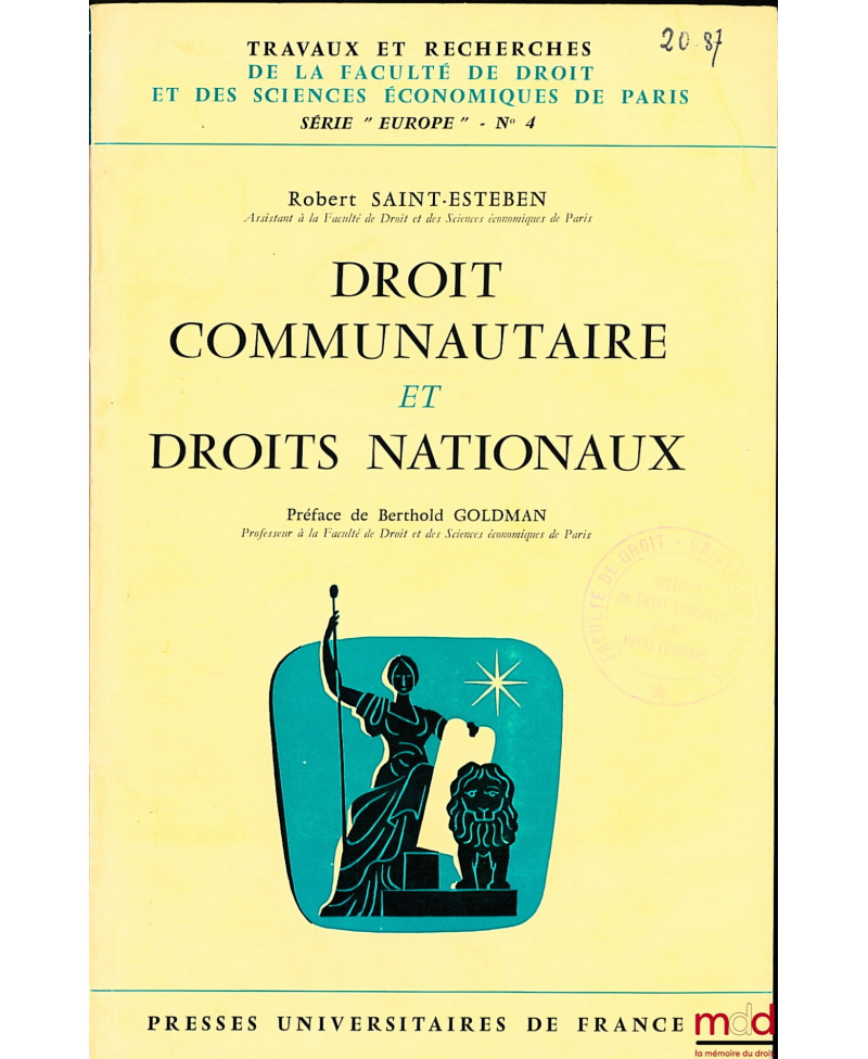 DROIT COMMUNAUTAIRE ET DROITS NATIONAUX, Préface de Berthold Goldman, coll. Travaux et recherches de la faculté de droit et d...