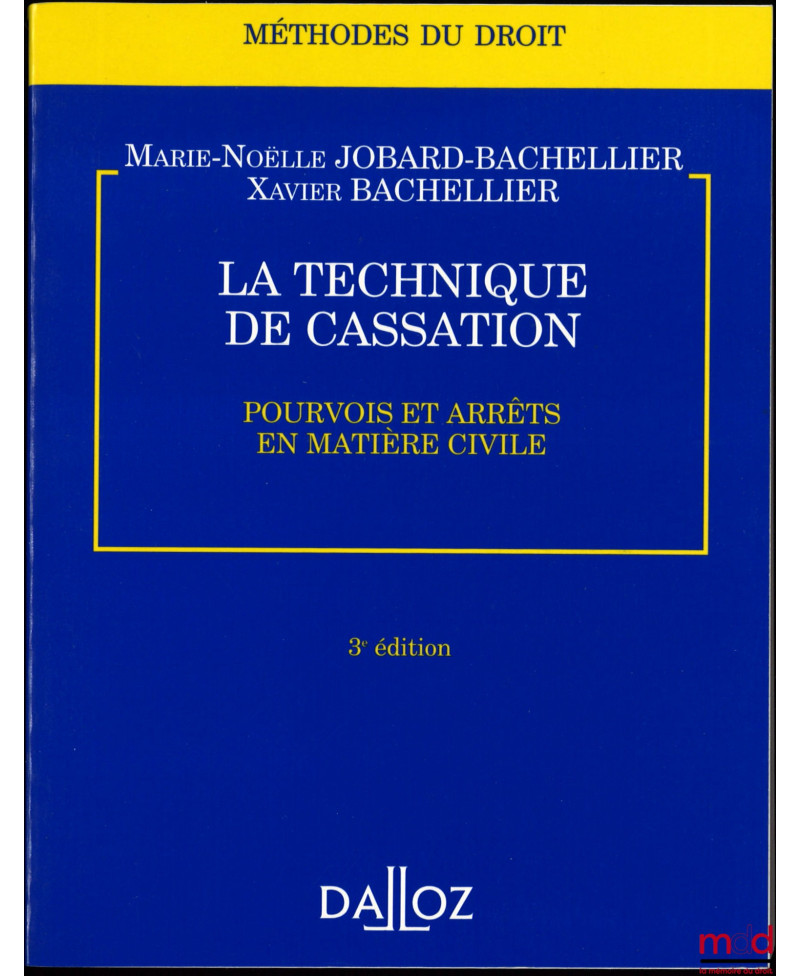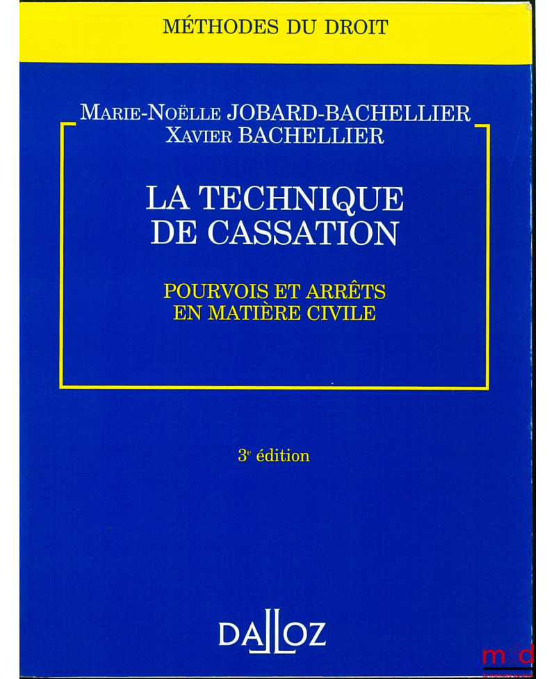 LA TECHNIQUE DE CASSATION, POURVOIS ET ARRÊTS EN MATIÈRE CIVILE, 3e éd., coll. Méthodes du droit
