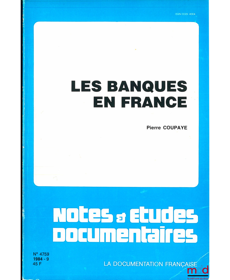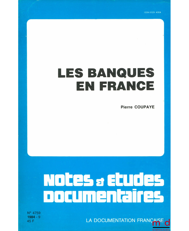 LES BANQUES FRANÇAISES, BILAN D’UNE RÉFORME, coll. Notes & études documentaires