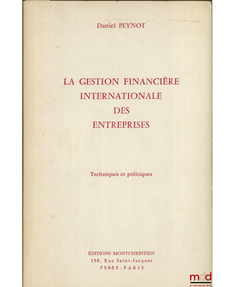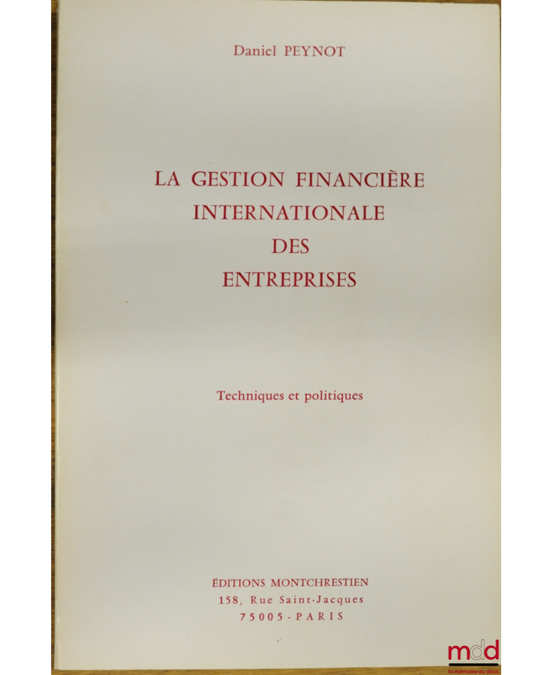 LA GESTION FINANCIÈRE INTERNATIONALE DES ENTREPRISES, Techniques et politiques