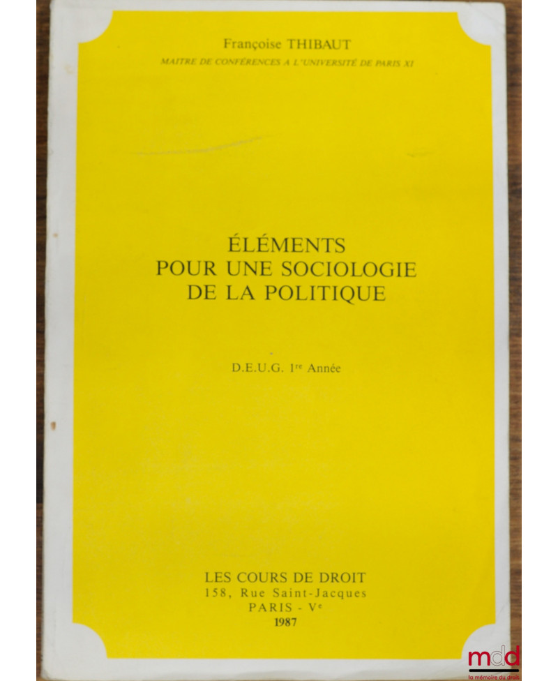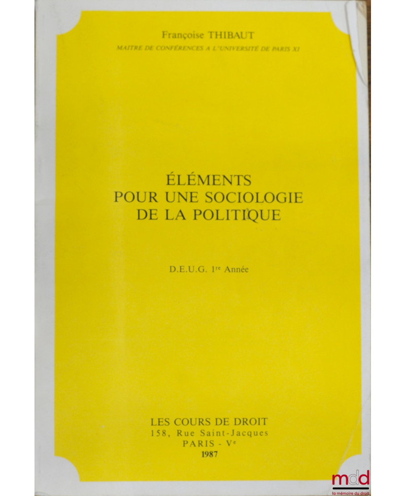Aperçu Ajouter au panier Ajouter à vos souhaits Comparer Droit moderne (XX-XXIe siècles) THIBAUT (Françoise) ÉLÉMENTS POUR UNE SOCIOLOGIE DE LA POLITIQUE, D.E.U.G. 1ère année 1987 Prix ÉLÉMENTS POUR UNE SOCIOLOGIE DE LA POLITIQUE, D.E.U.G. 1ère année 1987