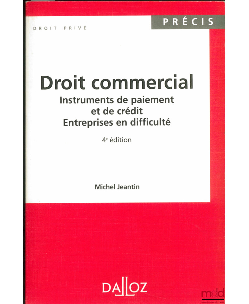 Aperçu Ajouter au panier Ajouter à vos souhaits Comparer Droit moderne (XX-XXIe siècles) JEANTIN (Michel) DROIT COMMERCIAL : INSTRUMENTS DE PAIEMENT ET DE CRÉDIT - ENTREPRISES EN DIFFICULTÉ, coll. Précis Dalloz / Droit privé Prix DROIT COMMERCIAL : INSTRUMENTS DE PAIEMENT ET DE CRÉDIT - ENTREPRISES EN DIFFICULTÉ, coll. Précis Dalloz / Droit privé