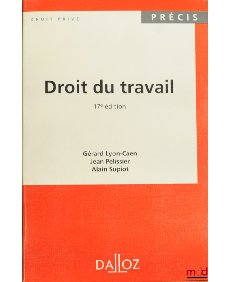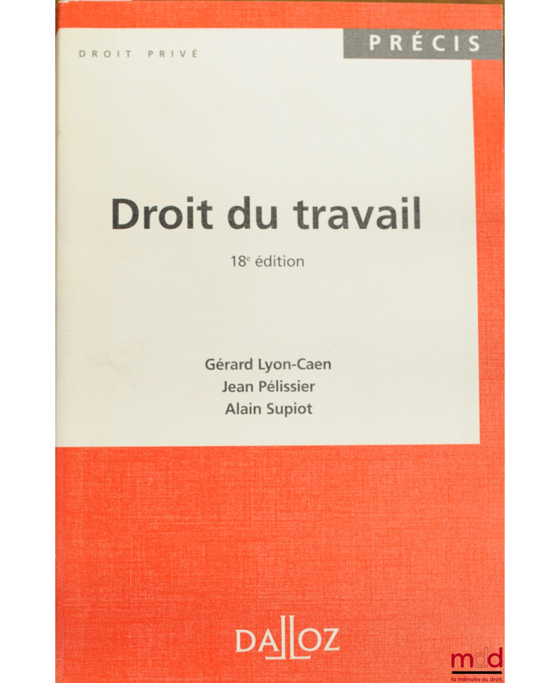 DROIT DU TRAVAIL, 18ème éd., coll. Précis Dalloz / Droit privé