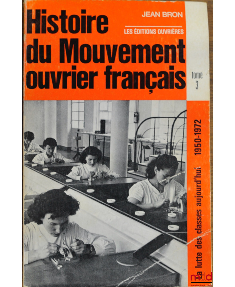 HISTOIRE DU MOUVEMENT OUVRIER FRANÇAIS, coll. La lutte des classes aujourd’hui 1950-1972, t. 3