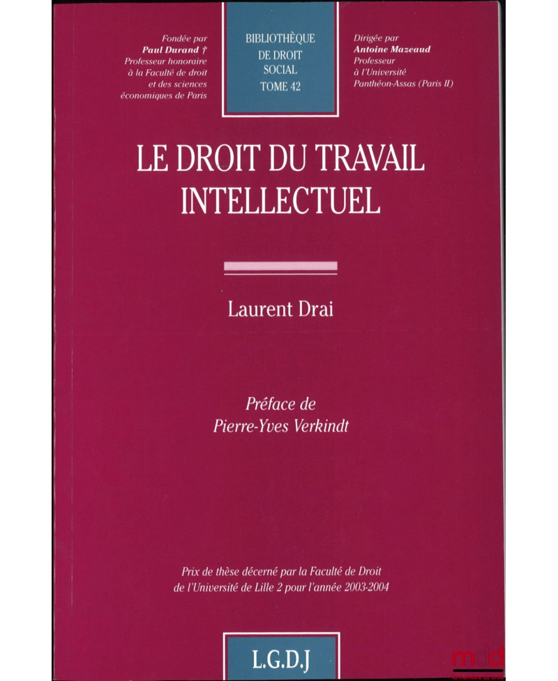 LE DROIT DU TRAVAIL INTELLECTUEL, Préface de Pierre-Yves Verkindt, Bibl. de droit social, t. 42