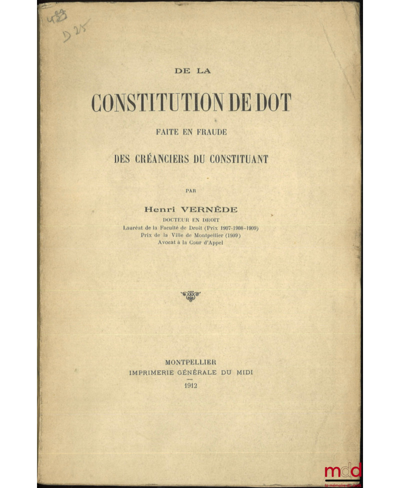 Aperçu Ajouter au panier Ajouter à vos souhaits Comparer Droit moderne (XX-XXIe siècles) VERNÈDE (Henri) DE LA CONSTITUTION DE DOT FAITE EN FRAUDE DES CRÉANCIERS DU CONSTITUANT Prix DE LA CONSTITUTION DE DOT FAITE EN FRAUDE DES CRÉANCIERS DU CONSTITUANT
