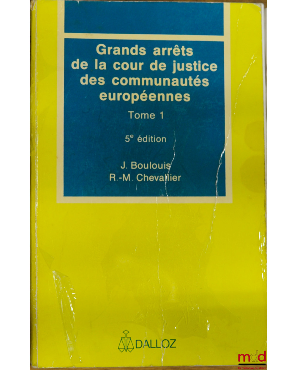 GRANDS ARRÊTS DE LA COUR DE JUSTICE DES COMMUNAUTÉS EUROPÉENNES, t. 1 : Caractères généraux du droit communautaire, droit institutionnel, contrôle juridictionnel, 5ème éd.