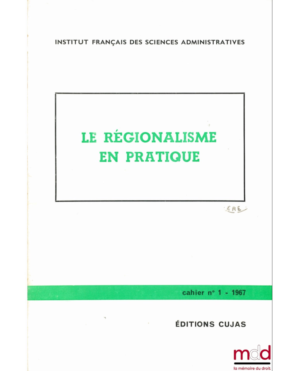 LE RÉGIONALISME EN PRATIQUE, Cahier de l’Institut français des sciences administratives, n° 1