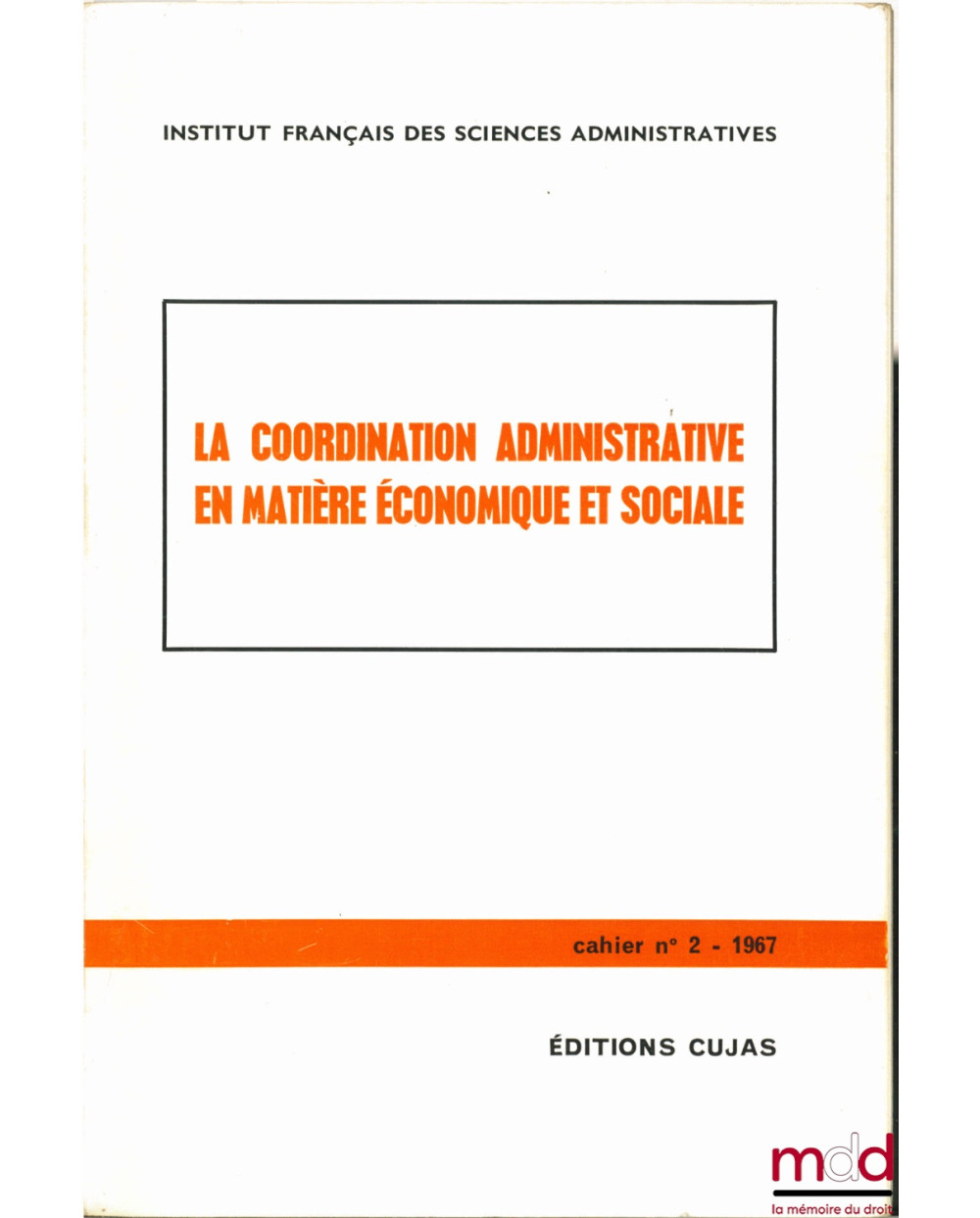 LA COORDINATION ADMINISTRATIVE EN MATIÈRE ÉCONOMIQUE ET SOCIALE, Cahier de l’Institut français des sciences administratives, n° 2
