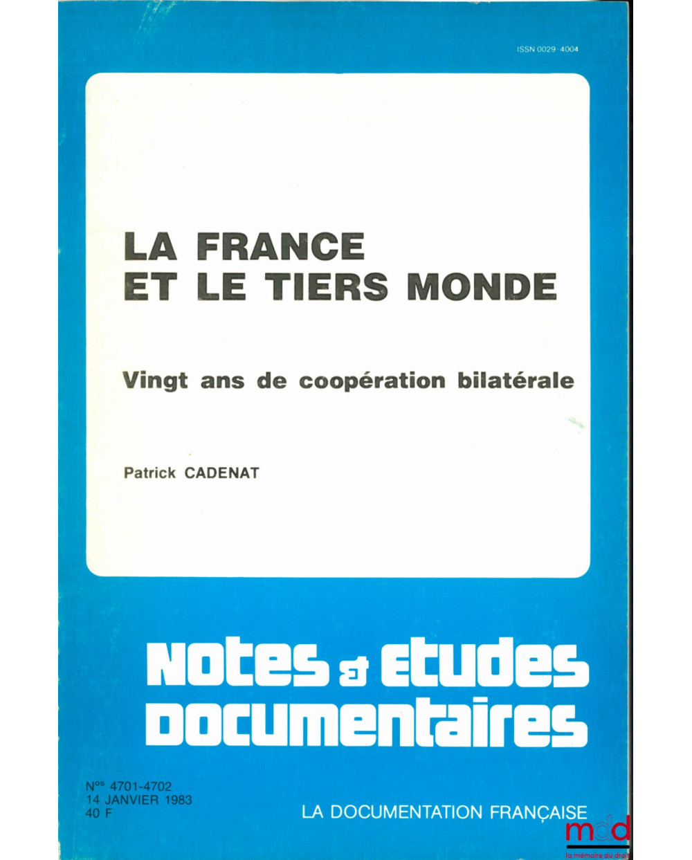 LA FRANCE ET LE TIERS MONDE. VINGT ANS DE COOPÉRATION BILATÉRALE, coll. Notes & études documentaires