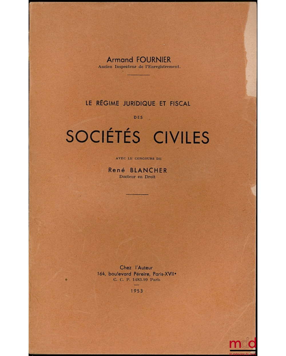 LE RÉGIME JURIDIQUE ET FISCAL DES SOCIÉTÉS CIVILES, avec le concours de René Blancher