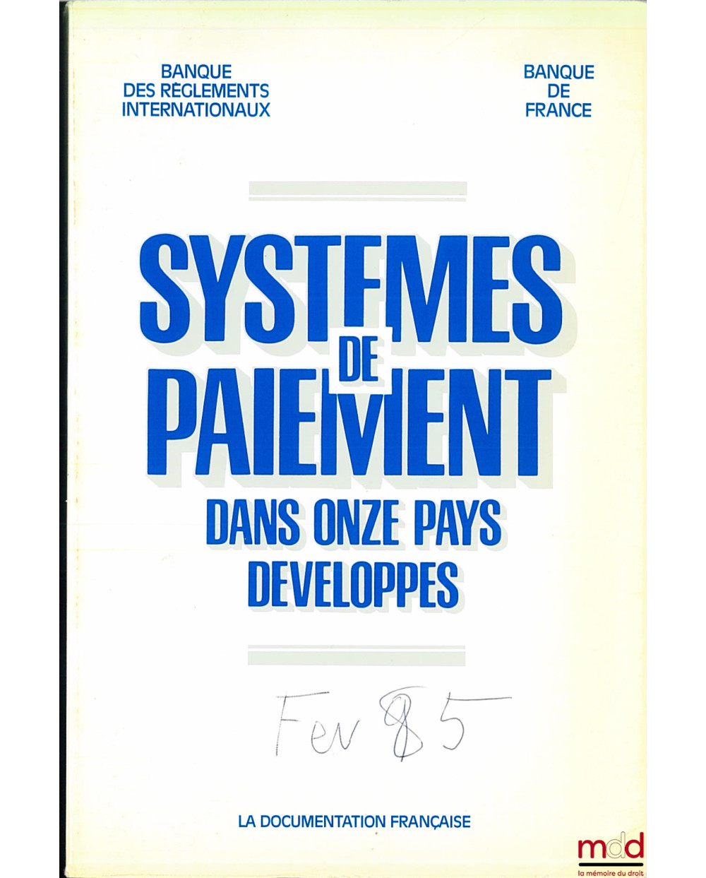 SYSTÈMES DE PAIEMENT DANS ONZE PAYS DÉVELOPPÉS établi par la Banque des Règlements internationaux, traduit de l’anglais sous la responsabilité de la Banque de France, Février 1985
