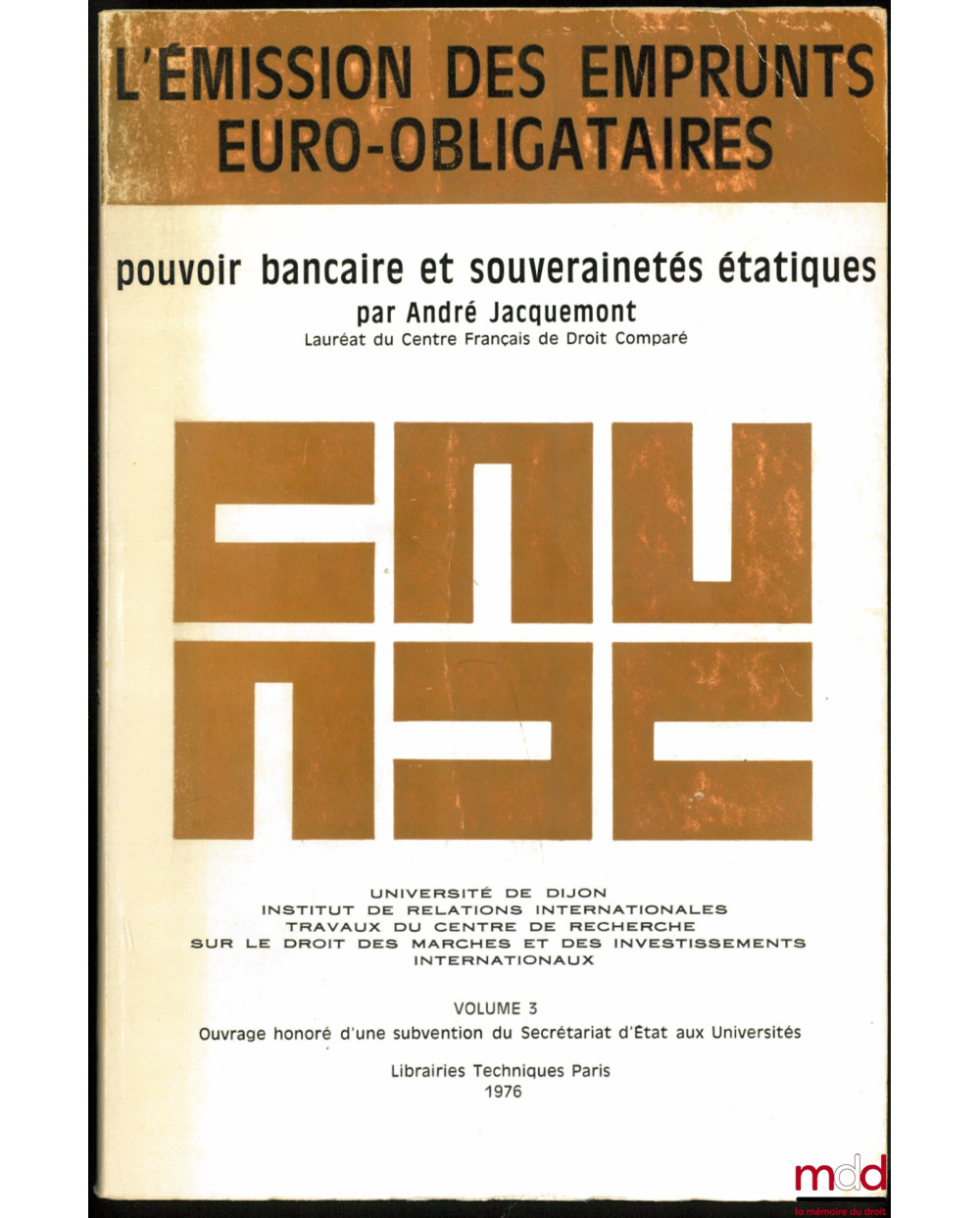 L’ÉMISSION DES EMPRUNTS EURO-OBLIGATAIRES. POUVOIR BANCAIRE ET SOUVERAINETÉS ÉTATIQUES, Université de Dijon, Inst. de relations internationales ; travaux du Centre de rech. sur le droit des marchés et des investissements internationaux, vol. 3