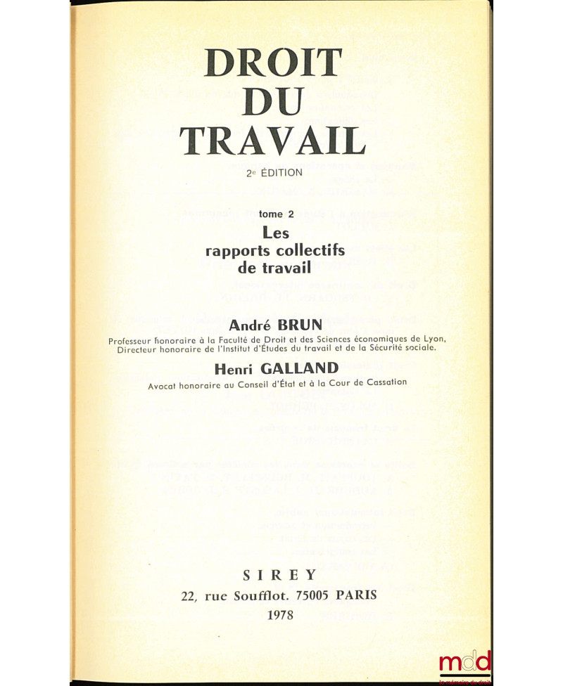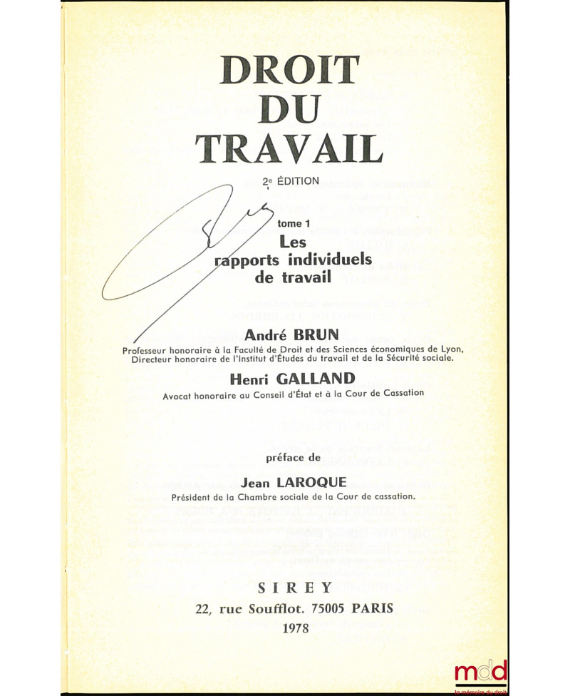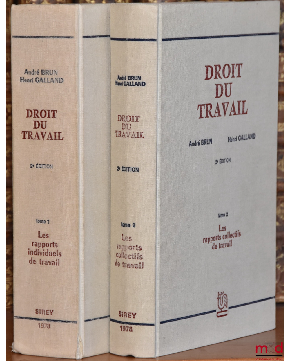 DROIT DU TRAVAIL, 2e éd., t. I : Les rapports individuels de travail ; t. II : Les rapports collectifs de travail, Préface de Pierre Laroque