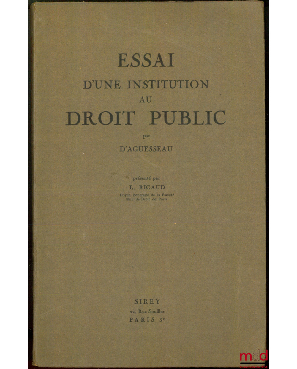 ESSAI D’UNE INSTITUTION AU DROIT PUBLIC RÉÉDITÉ COMME INTRODUCTION FONDAMENTALE AUX ÉTUDES JURIDIQUES PAR L. RIGAUD