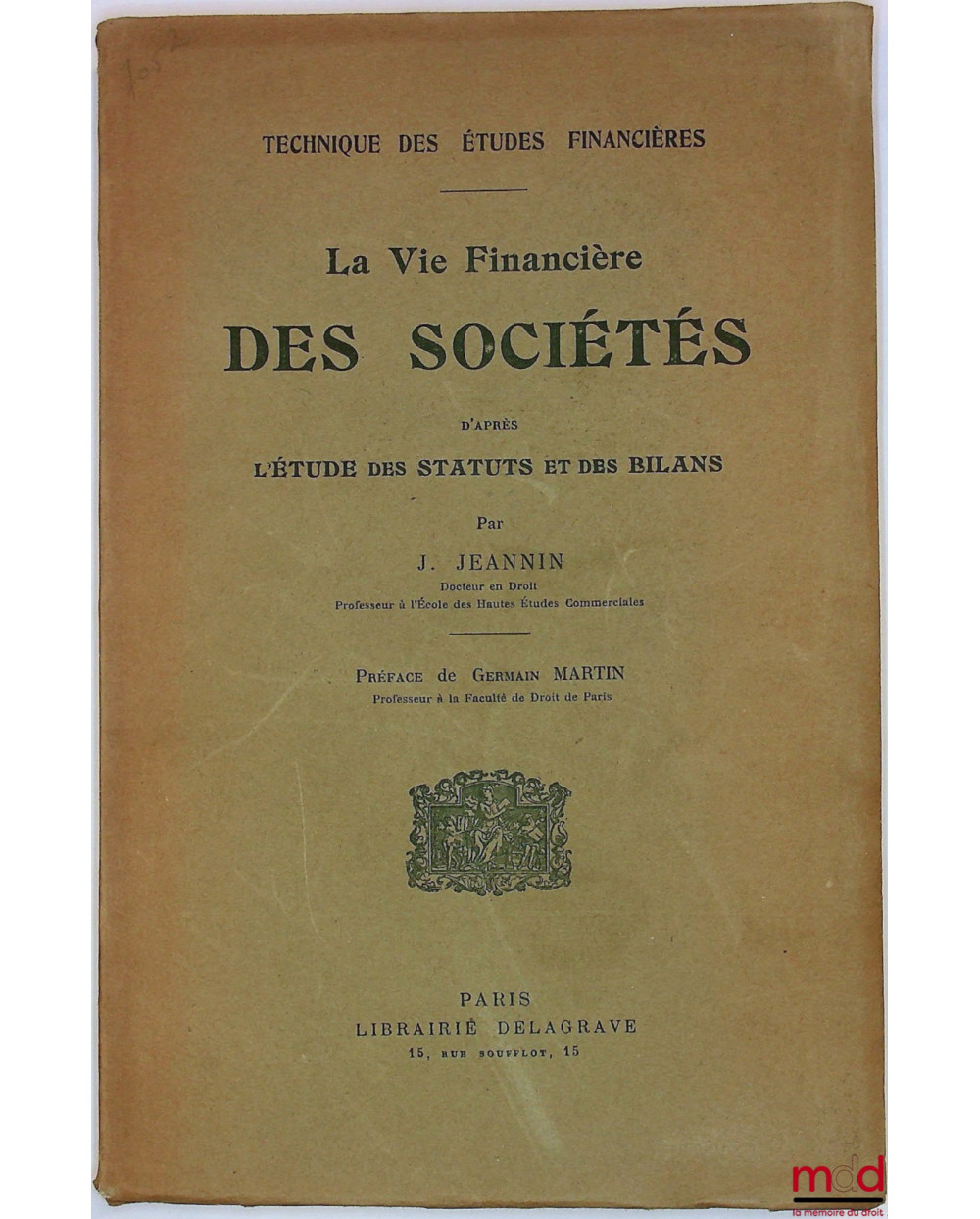 LA VIE FINANCIÈRE DES SOCIÉTÉS d’après L’ÉTUDE DES STATUTS et des BILANS, Préface de Germain Martin, coll. Technique des Études Financières