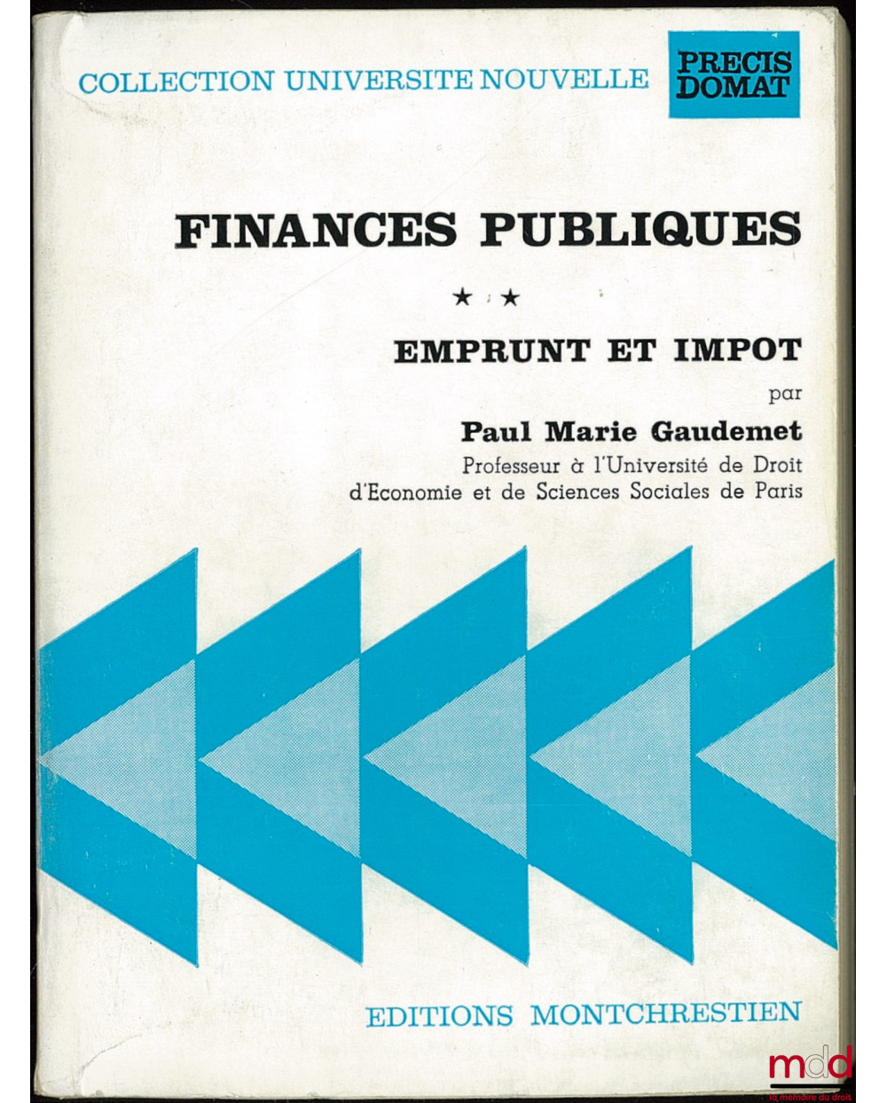 FINANCES PUBLIQUES, t. II (uniquement) : IMPÔT - EMPRUNT, 2ème éd., coll. Université Nouvelle, Précis Domat
