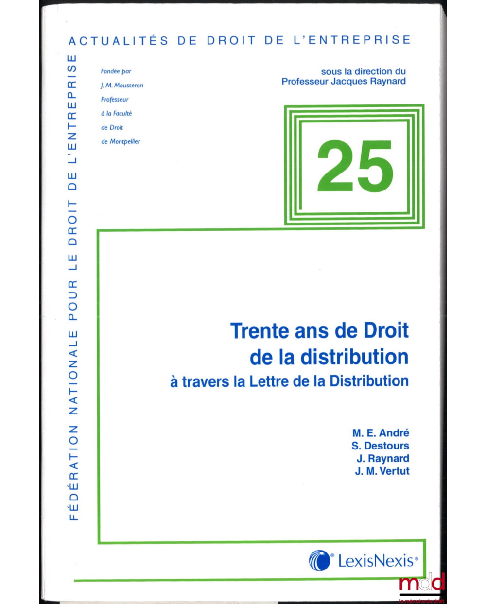 « En 1975, le Professeur Jean Marc Mousseron, entouré des premiers complices, publiait le premier Traité de Droit de la Distribution. Soucieux de prolonger au quotidien l’effort de la recherche première, le même initiait à la même époque, une publication mensuelle destinée à procurer aux praticiens une information régulière dans ce secteur particulier du Droit de l’Entreprise. La Lettre de la Distribution était née. Celle-là revendique aujourd’hui la place d’observateur assidu de l’actualité juridique qui nourrit les manifestations du Droit de la Distribution dans ses applications les plus diverses. L’ouvrage présenté recense près de trente années d’informations publiées dans la Lettre (textes et décisions de jurisprudence) relativement à trois thèmes : les contrats de la distribution, la prohibition des pratiques anticoncurrentielles d’entreprises, la transparence tarifaire et les autres pratiques restrictives. » (4e de couv.). Épuisé.