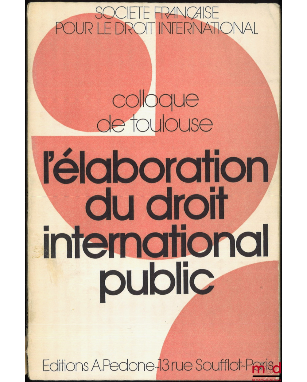 Avec les contributions de J. Mourgeon, Conditions actuelles de l’élaboration du droit international public ; R. Pinto, Tendances de l’élaboration fdes formes écrites du droit international ; T. A. Mensah et C.H. Zimmerli, L’activité réglementaire de l’ O.M.C.I. ; Ph. Bretton, Problèmes actuels de l’élaboration du droit des conflits armés ; P. Vellas, Les sources informelles du droit international public ; J. Charpentier, Tendances de l’élaboration du droit international coutumier ; R.J. Dupuy, Droit déclaratoire et droit programatoire : de la coutume sauvage à la «soft-law» ; Y. Daudet, Techniques de codification ; G. Ladreit de Lacharrière, Tendances contradictoires en matière de consentement des états ; M. K. Yasseen, Réflexions sur le détermination de «jus cogens»