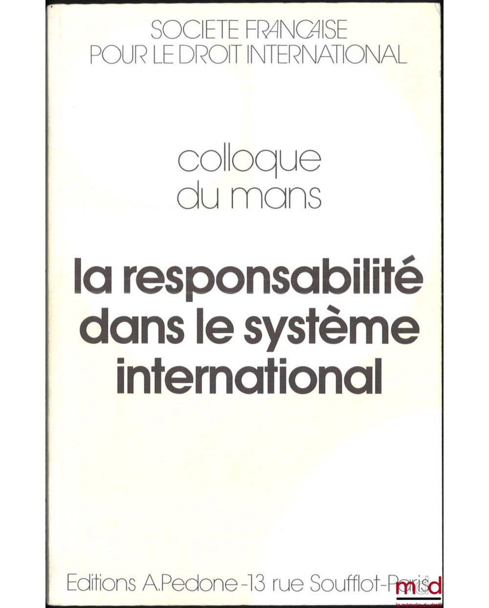 LA RESPONSABILITÉ DANS LE SYSTÈME INTERNATIONAL, Colloque du Mans (31 mai au 2 juin 1990), coll. de la Société Française pour le Droit International
