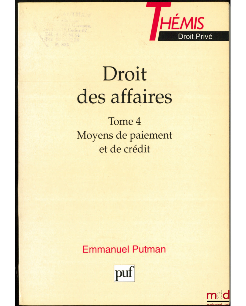 DROIT DES AFFAIRES, t. 4 [seul] : MOYENS DE PAIEMENT ET DE CRÉDIT, coll. Thémis / Droit privé