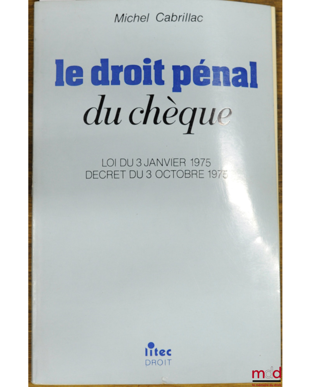 LE DROIT PÉNAL DU CHÈQUE, Loi du 3 janvier 1975, décret du 3 octobre 1975