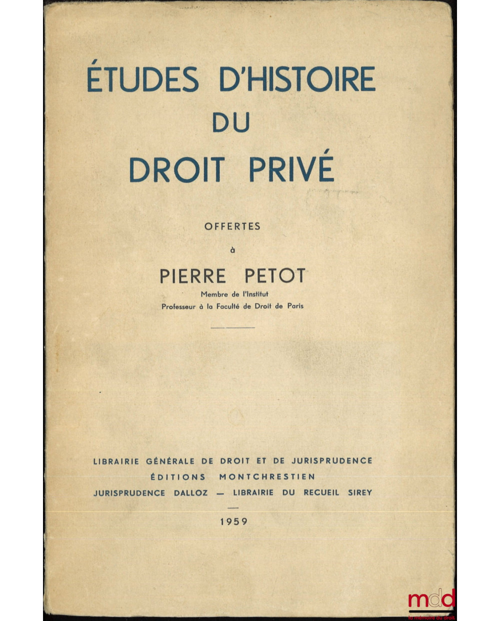 ÉTUDES D’HISTOIRE DU DROIT PRIVÉ OFFERTES À PIERRE PETOT