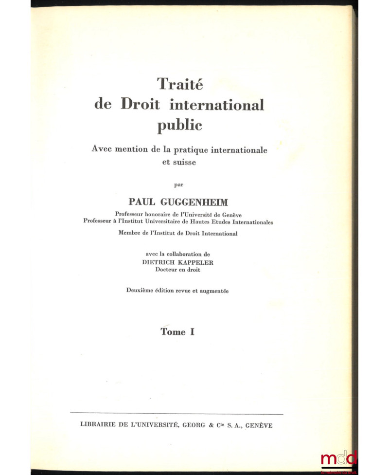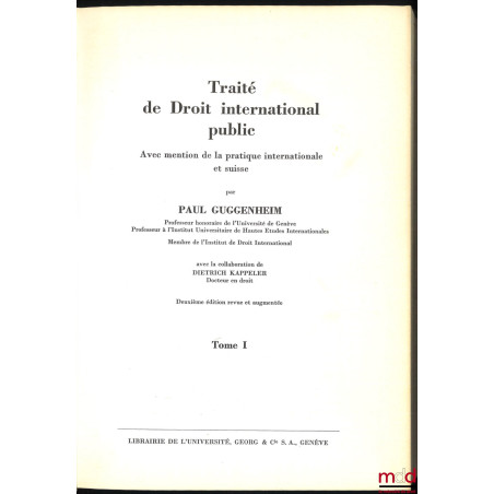 TRAITÉ DE DROIT INTERNATIONAL PUBLIC avec mention de la pratique internationale et suisse, avec la collaboration de Denise Bindschedler-Robert, 2e éd. revue et augmentée, [t. 1 seul]