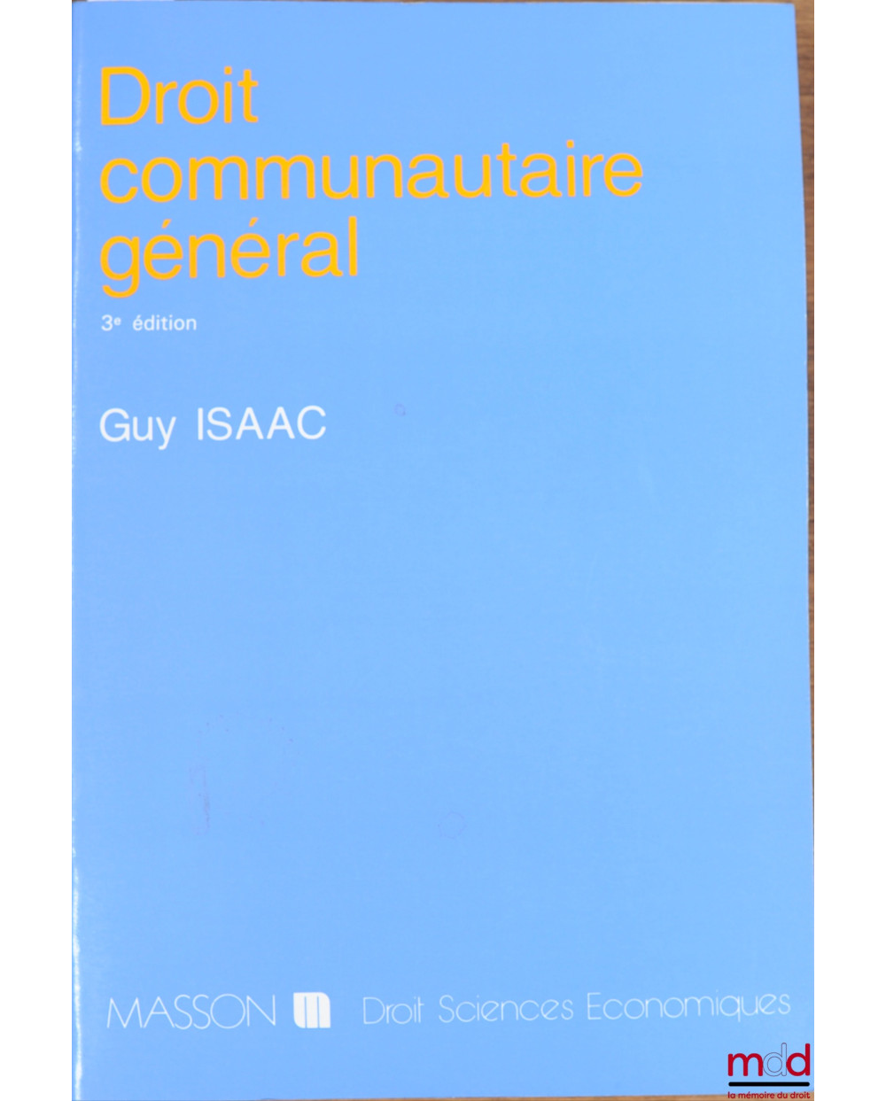 DROIT COMMUNAUTAIRE GÉNÉRAL, 3ème éd., coll. Droit sciences économiques
