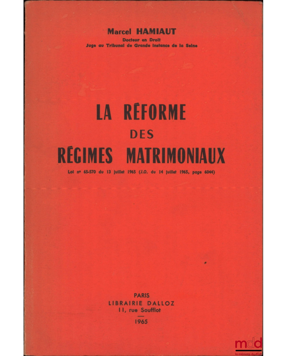 LA RÉFORME DES RÉGIMES MATRIMONIAUX, Loi n° 65-570 du 13 juillet 1965