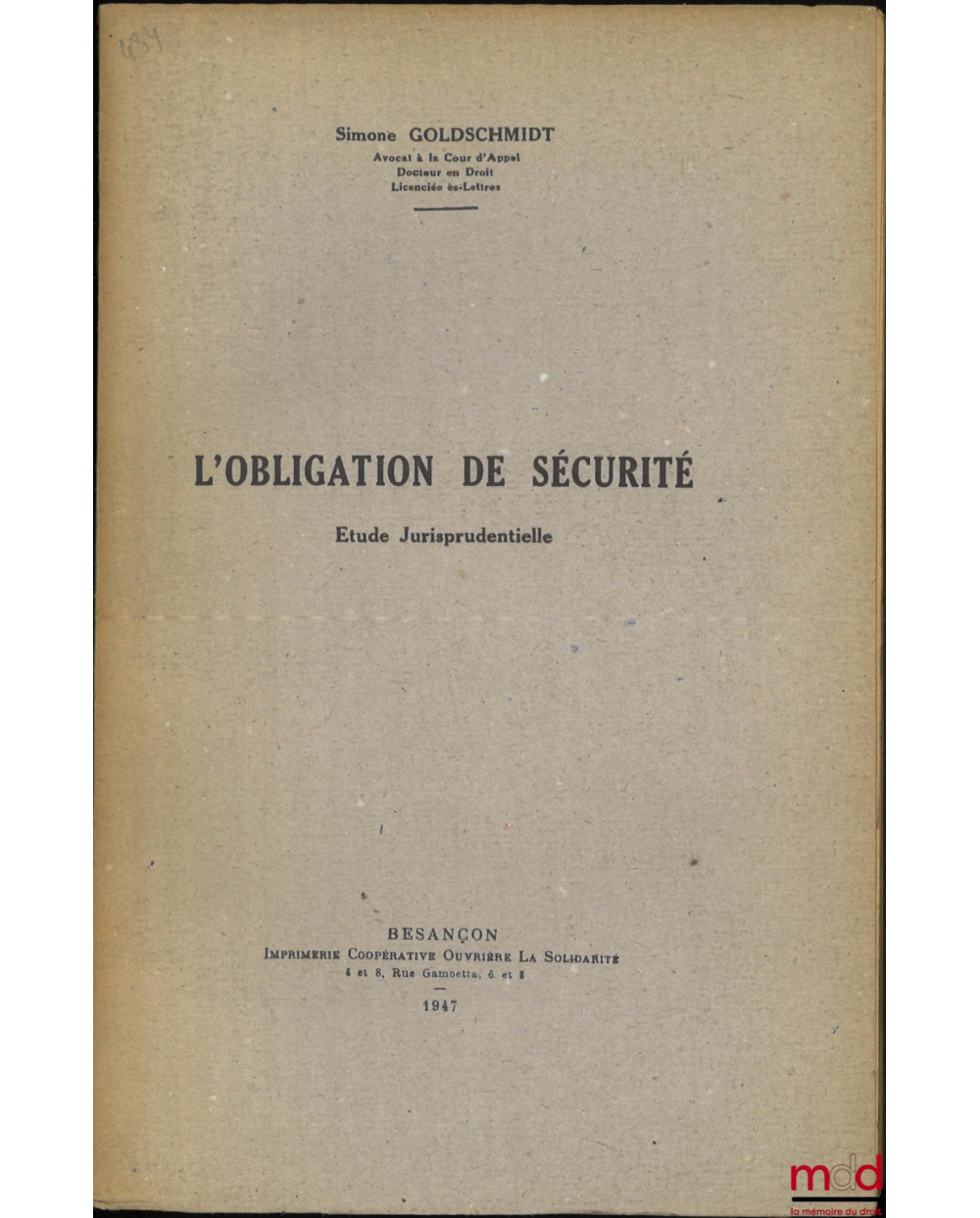 Editeur : Imp. coopérative ouvrière La Solidarité