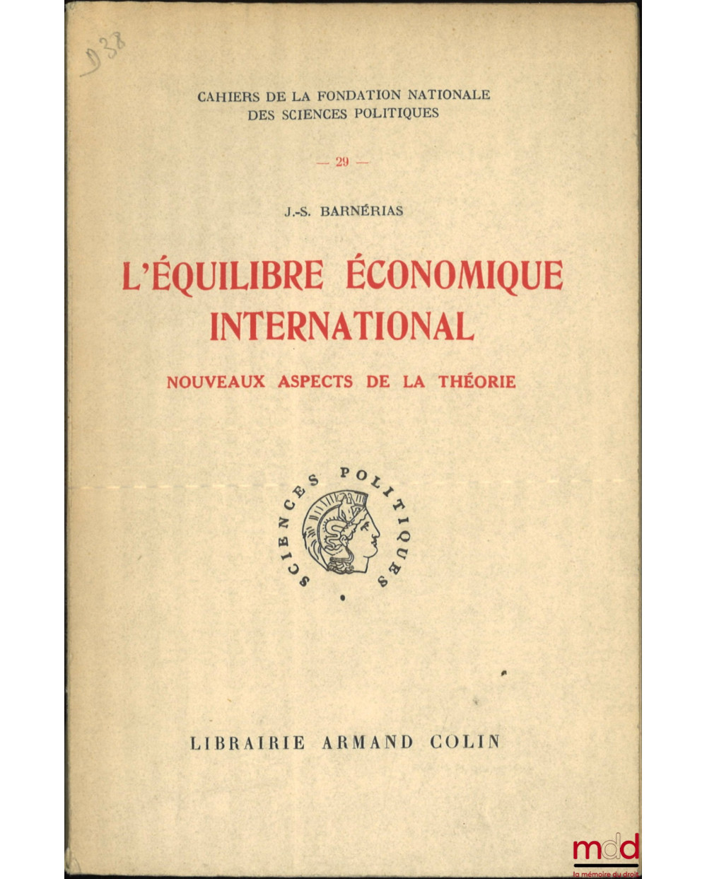 L’ÉQUILIBRE ÉCONOMIQUE INTERNATIONAL, Nouveaux aspects de la théorie, Cahiers de la fondation nationale des sciences politiques n° 29