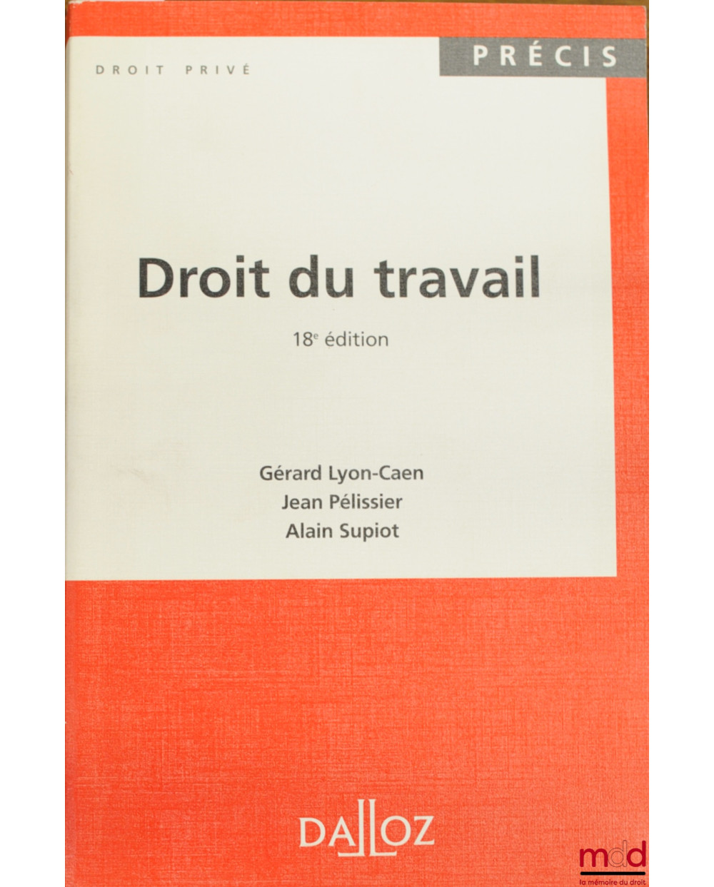 DROIT DU TRAVAIL, 18ème éd., coll. Précis Dalloz / Droit privé