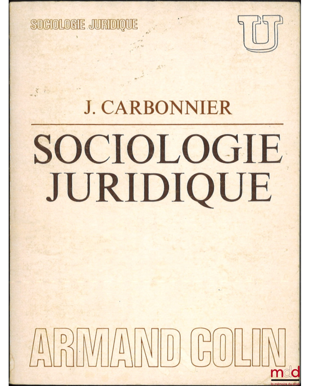 Première édition. « Suivant l’exemple des criminalistes, constate M. Carbonnier dans son “Avertissement”, les sociologues du droit devraient distinguer deux parties dans leur discipline : la sociologie juridique générale, consacrée aux notions fondamentales de la matière, et la sociologie juridique spéciale appelée à transposer lesdistes notions dans les divers domaines du droit. L’ouvrage que nous avons le plaisir de signaler à nos lecteurs se limite à la partie générale de la sociologie juridique, celle-ci est cependant illustrée par des exemples empruntés à la partie spéciale. […] On sait que l’ouvrage de M. Carbonnier a comblé une lacune ressentie depuis longtemps. En ce qui concerne plus particulièrement le comparatiste, ce volume lui rendra de précieux services : pur lui la connaissance des questions qui font la partie générale de la sociologie juridique est devenue de nos jours une nécessité impérieuse. » [Imre Zajtay, RIDC, 1972, n° 24-3, p. 728-731].