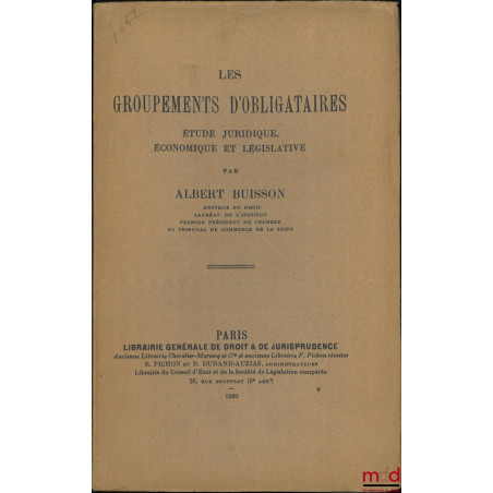 LES GROUPEMENTS D’OBLIGATAIRES, Étude juridique, économique et législative