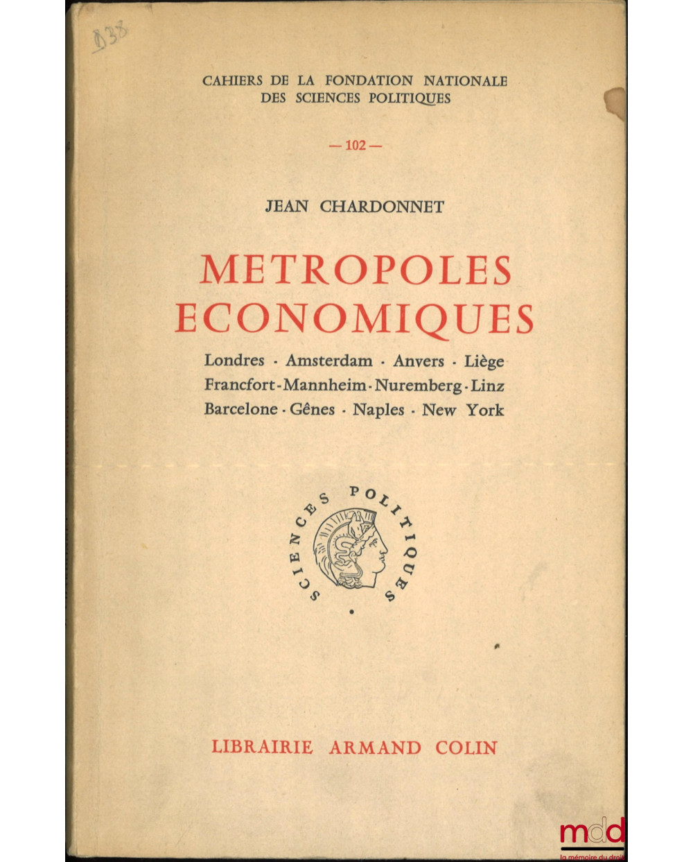 MÉTROPOLES ÉCONOMIQUES, Londres - Amsterdam - Anvers - Liège - Francfort - Mannheim - Nuremberg - Linz - Barcelone - Gênes - Naples - New York, Cahiers de la Fondation nationale des Sciences politiques, n° 102