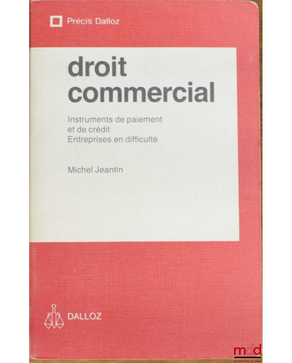 DROIT COMMERCIAL : INSTRUMENTS DE PAIEMENT ET DE CRÉDIT - ENTREPRISES EN DIFFICULTÉ, coll. Précis Dalloz / Droit privé