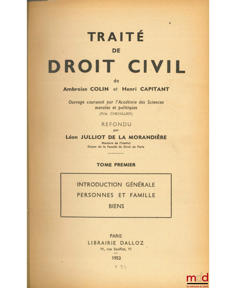 COLIN (Ambroise), CAPITANT (Henri) et JULLIOT DE LA MORANDIÈRE (Léon)