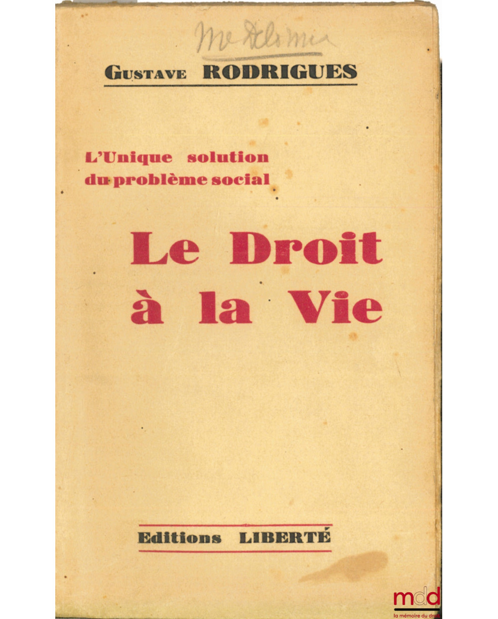 L’UNIQUE SOLUTION DU PROBLÈME SOCIAL : LE DROIT À LA VIE, 3ème éd.