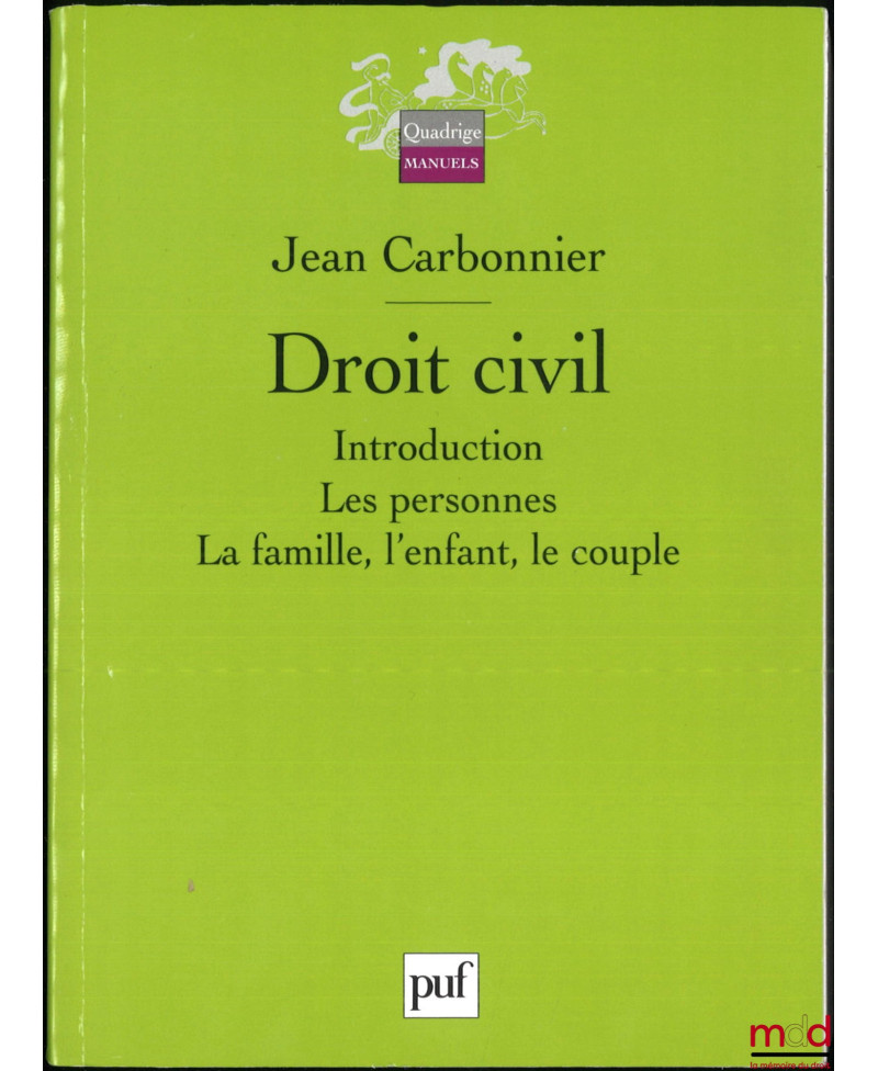 DROIT CIVIL, 1re éd. :vol. I : Introduction ; Les personnes ; La famille, l’enfant, le couple ;vol. II : Les biens, Les obligations, Manuels Quadrige