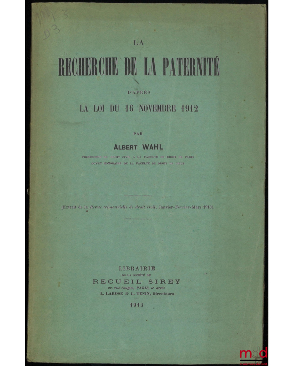 LA RECHERCHE DE LA PATERNITÉ D’APRÈS LA LOI DU 16 NOVEMBRE 1912